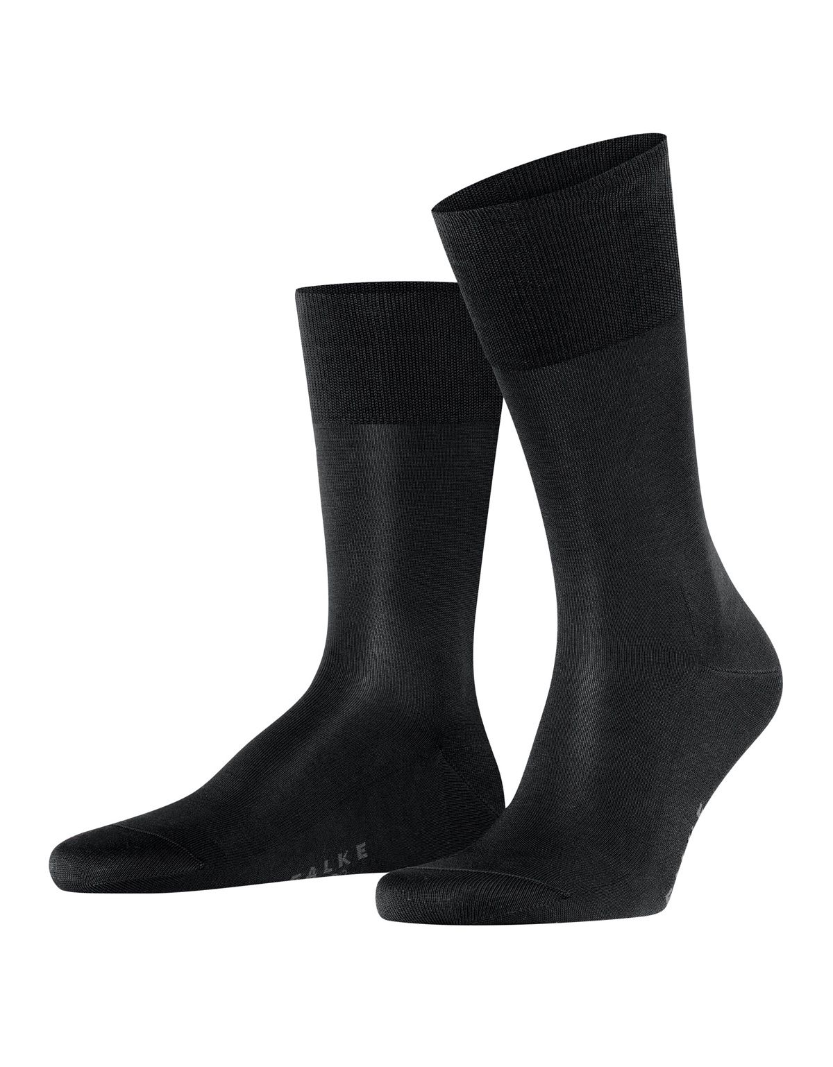 Мужские однотонные носки немецкого бренда FALKE из пряжи с шотландской нитью чёрного насыщенного цвета.