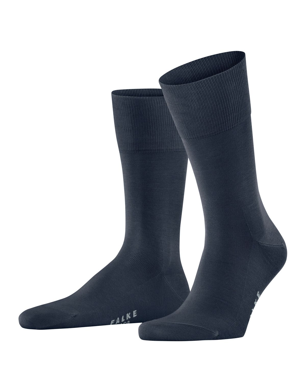 Мужские однотонные носки немецкого бренда FALKE из пряжи с шотландской нитью тёмно-синего насыщенного цвета.