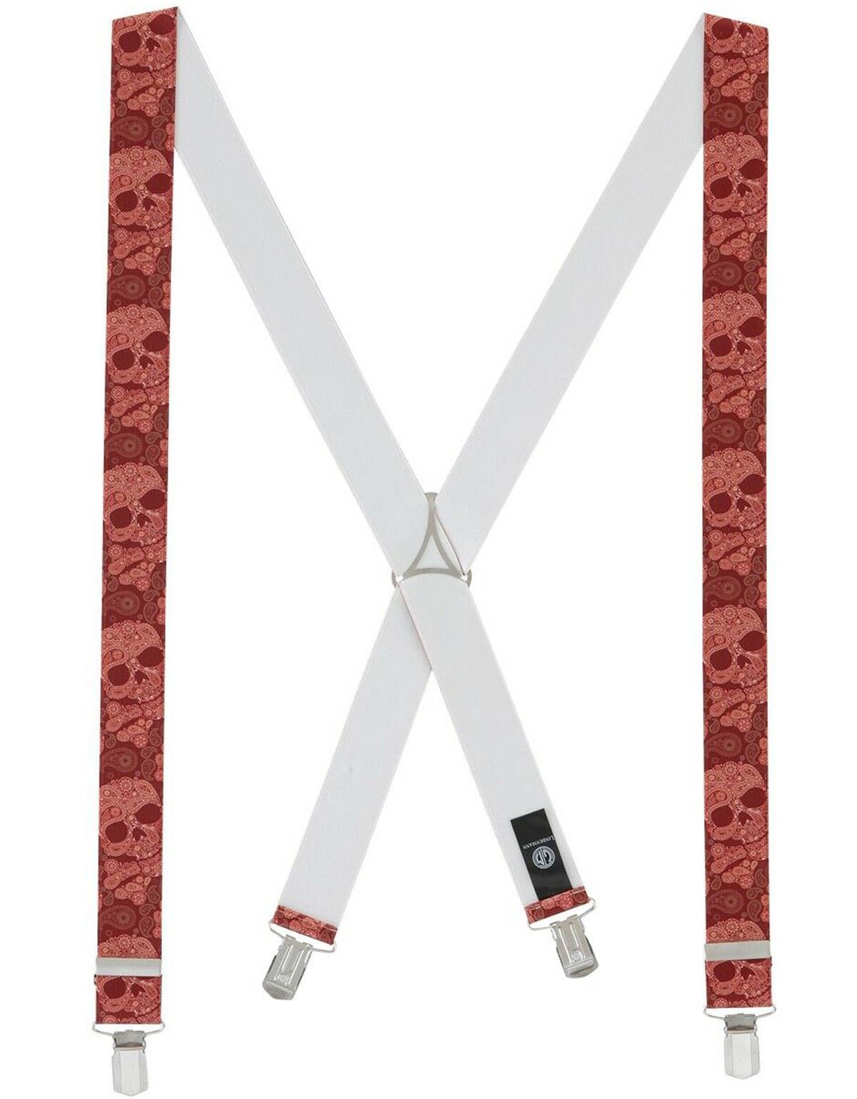 Подтяжки мужские с рисунком "череп" в красной гамме.