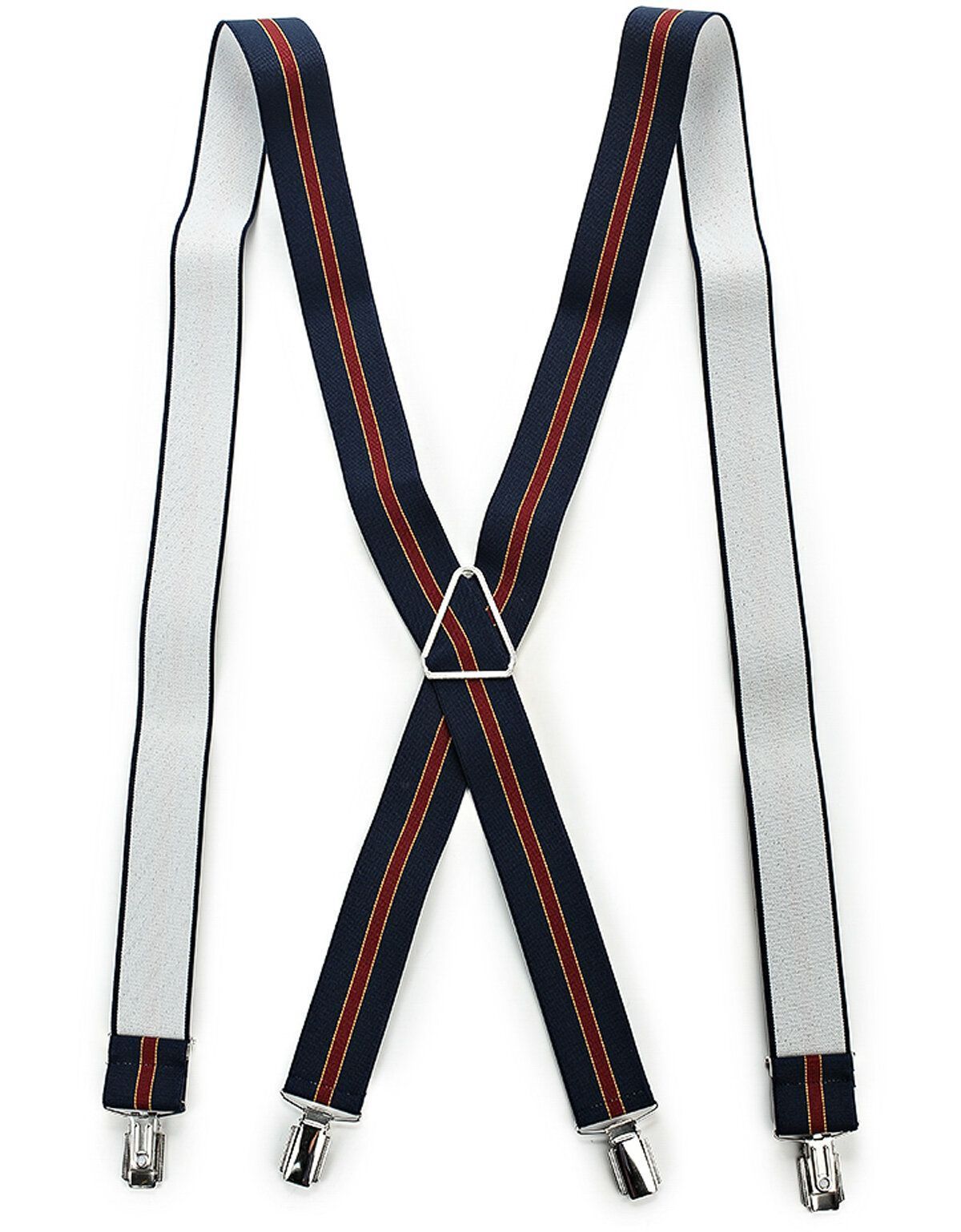Мужские подтяжки немецкого бренда Lindenmann темно-синего цвета с красной полосой.