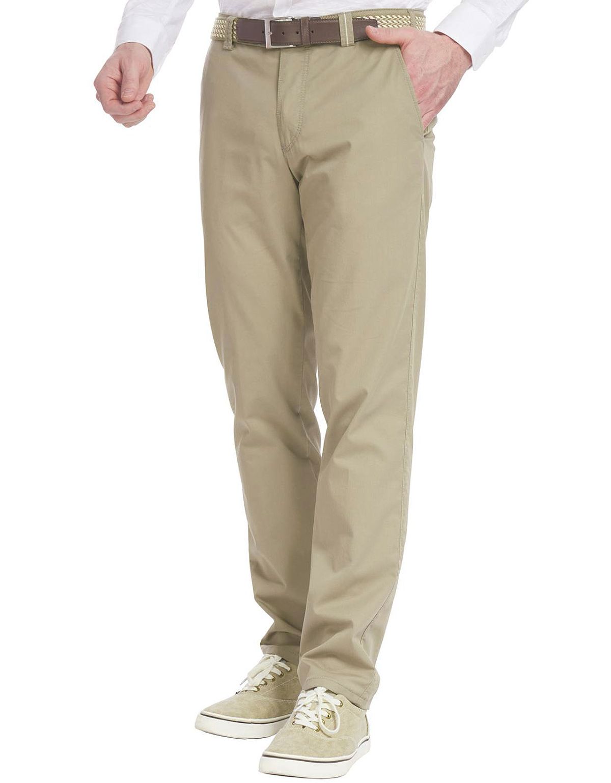 Новинка от немецкого бренда Meyer бежевые мужские брюки чинос немного зауженного кроя.