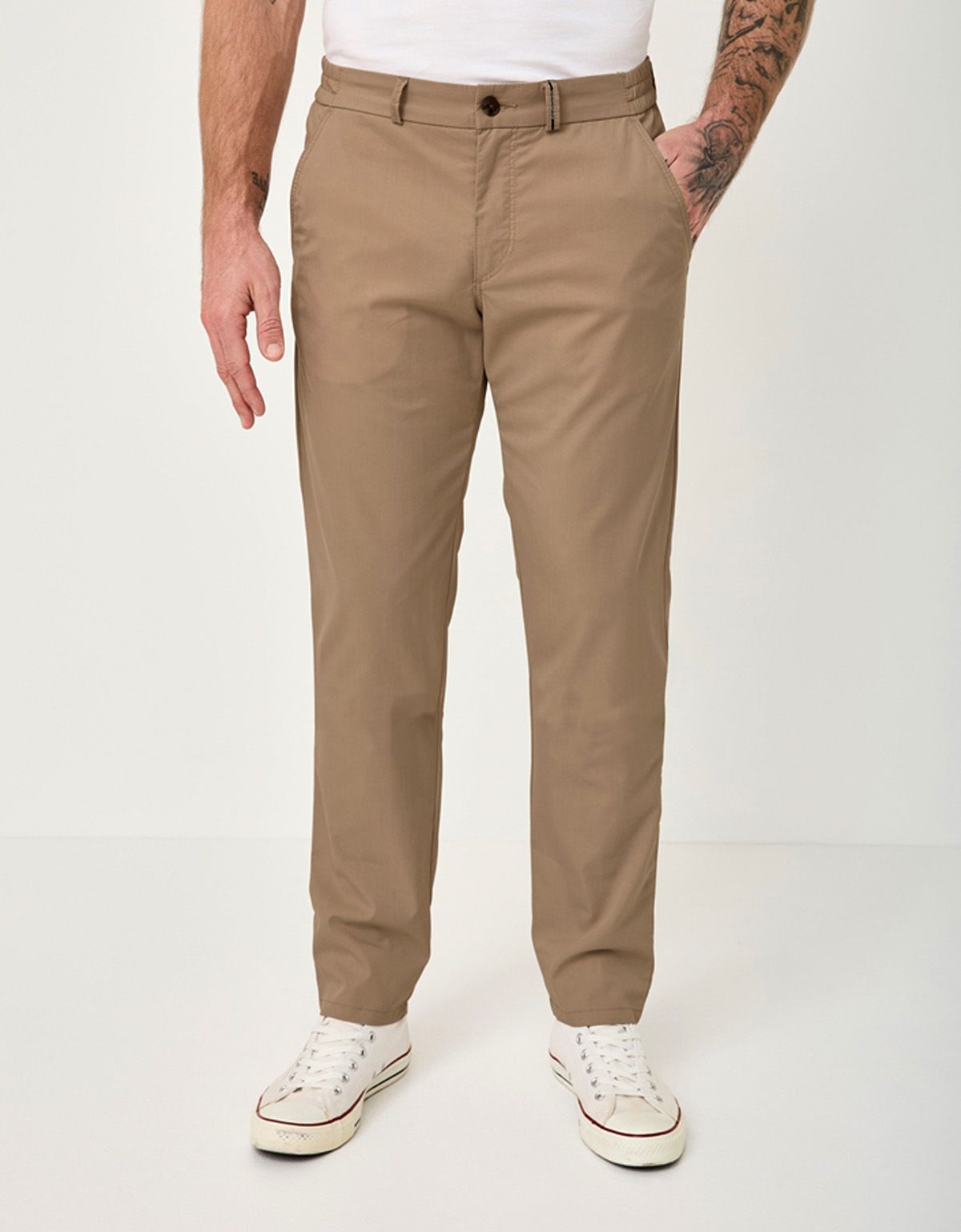 Мужские летние брюки REDPOINT в модели Halifax с резинкой на поясе выполнены в светло-коричневом цвете, который придает им элегантный и универсальный вид.