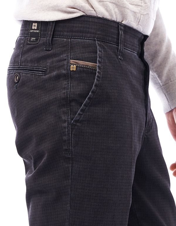 Мужские брюки немецкого бренда Club Of Comfort тёмно-серого цвета в синюю клеточку.
