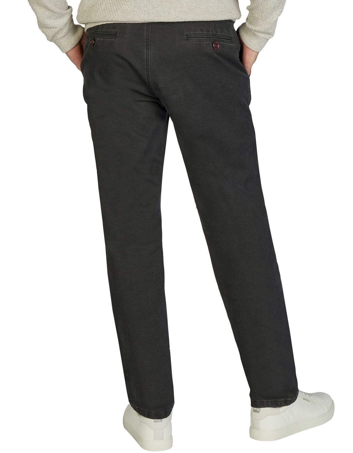 Удобные брюки без защипов с комфортным эластичным поясом и застежкой-молнией. Изготовлены из структурированной смеси хлопка и эластана, обладают высокой эластичностью, имитируют шерсть и утеплены Thermolite. Это высокотехнологичная ткань из микроволокон THERMOLITE® приклеивается непосредственно к изнаночной стороне ткани, которая состоит из полых волокон, в которых сохраняется теплый воздух и снова высвобождается при необходимости. Ширина брючины по низу 18 см.