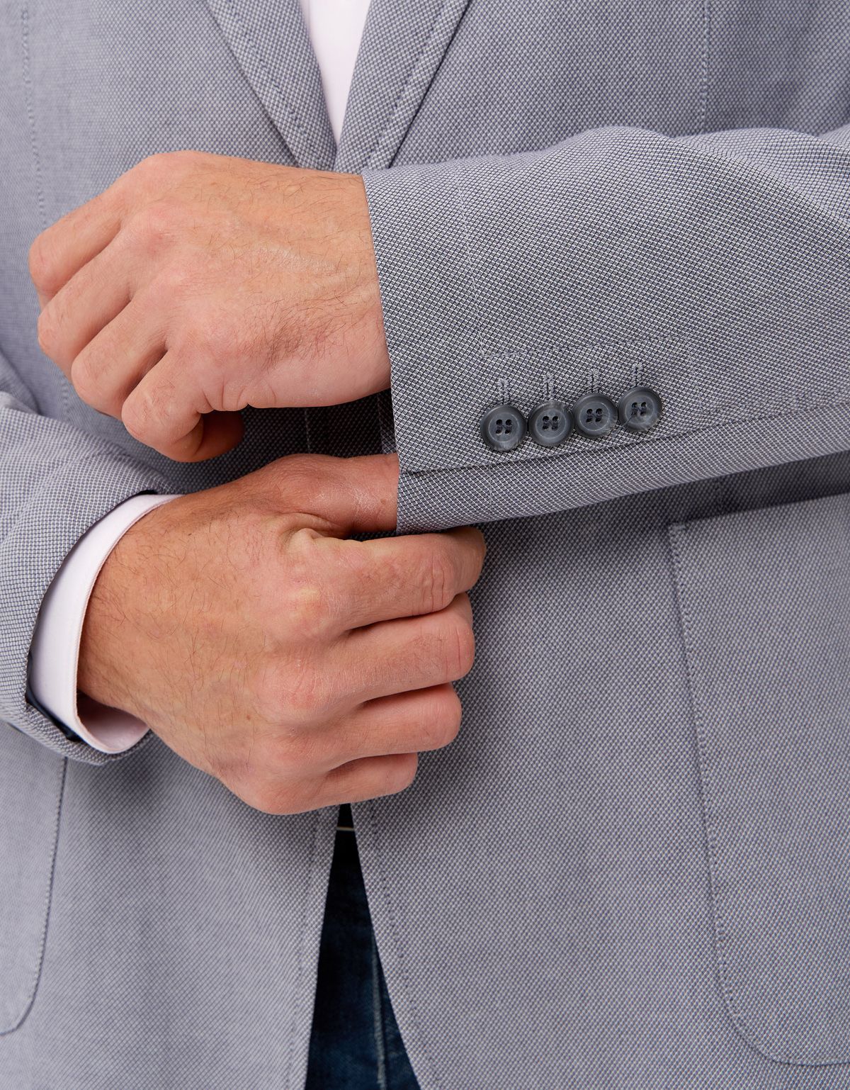 Модель с аккуратными лацканами, застёжка на 2 пуговицы, с 2 шлицами сзади.