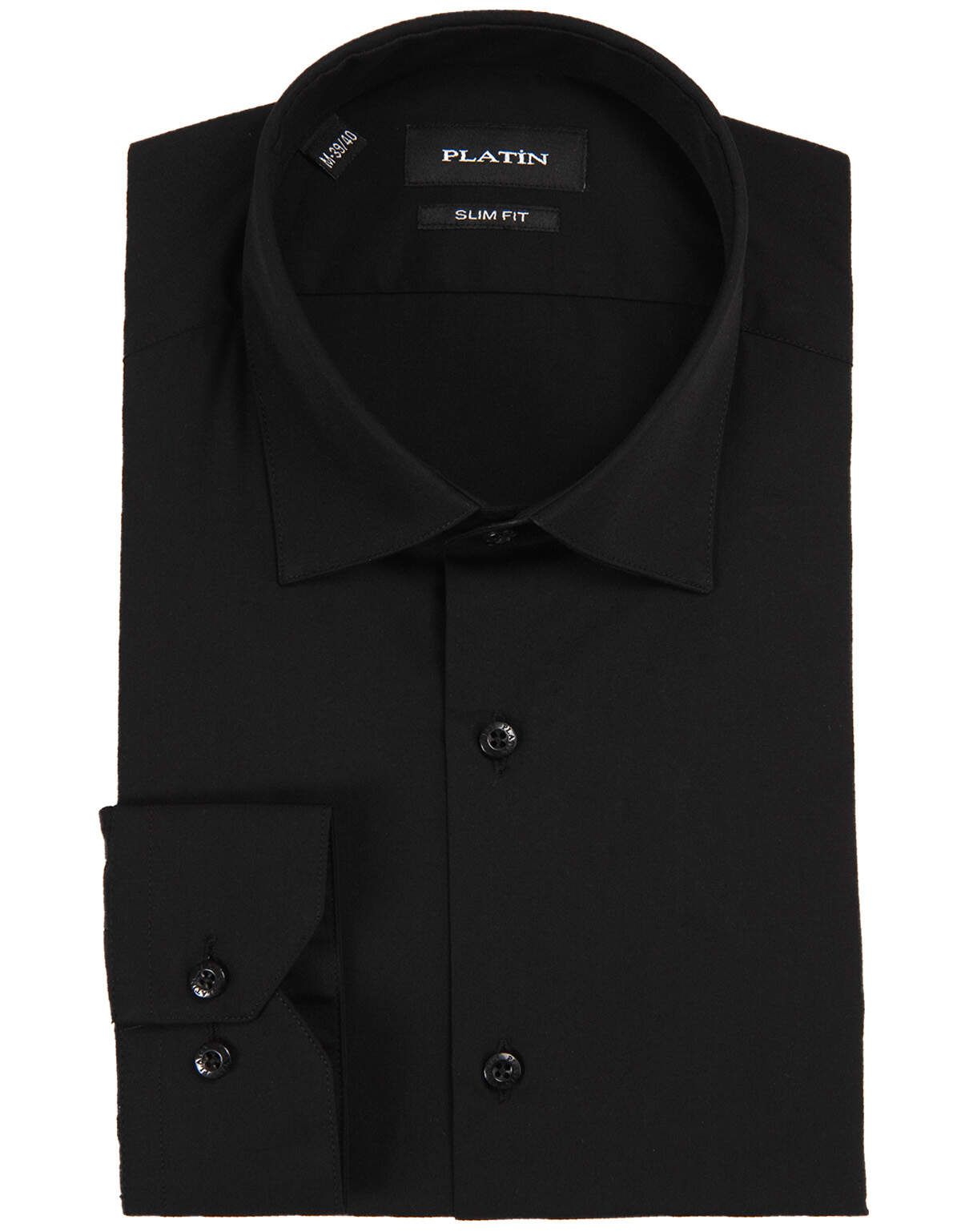Сорочка мужская турецкого бренда PLATIN линии Slim Fit чёрного цвета, однотонная.