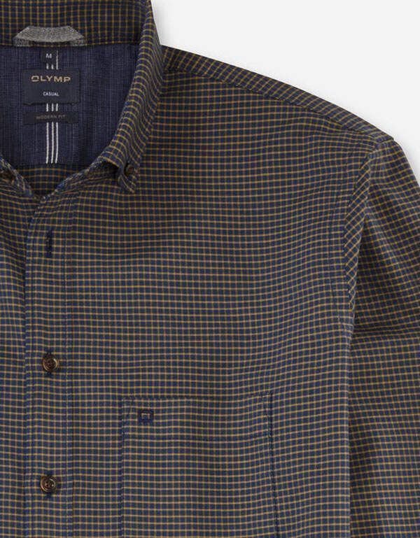 Повседневная мужская рубашка немецкого бренда OLYMP линии Casual полуприлегающего силуэта.