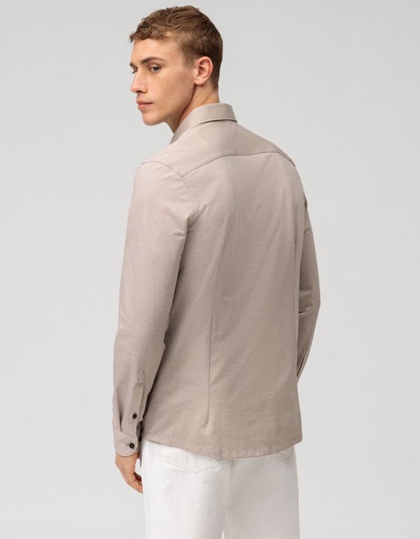 Эта рубашка с длинным рукавом в благородном бежевом цвете выполнена из хлопковой трикотажной ткани с элегантной структурой переплетения нитей в тон.