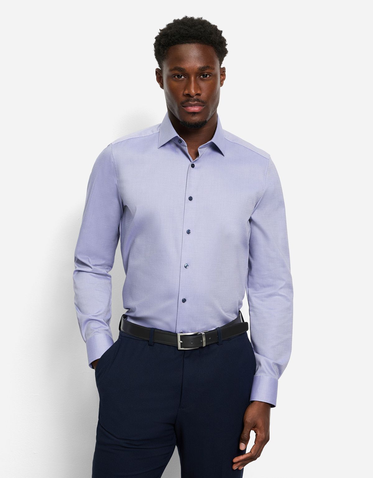 Элегантная приталенная рубашка OLYMP с длинным рукавом (64 см) в сиреневом цвете — изысканный выбор для делового мужского гардероба.