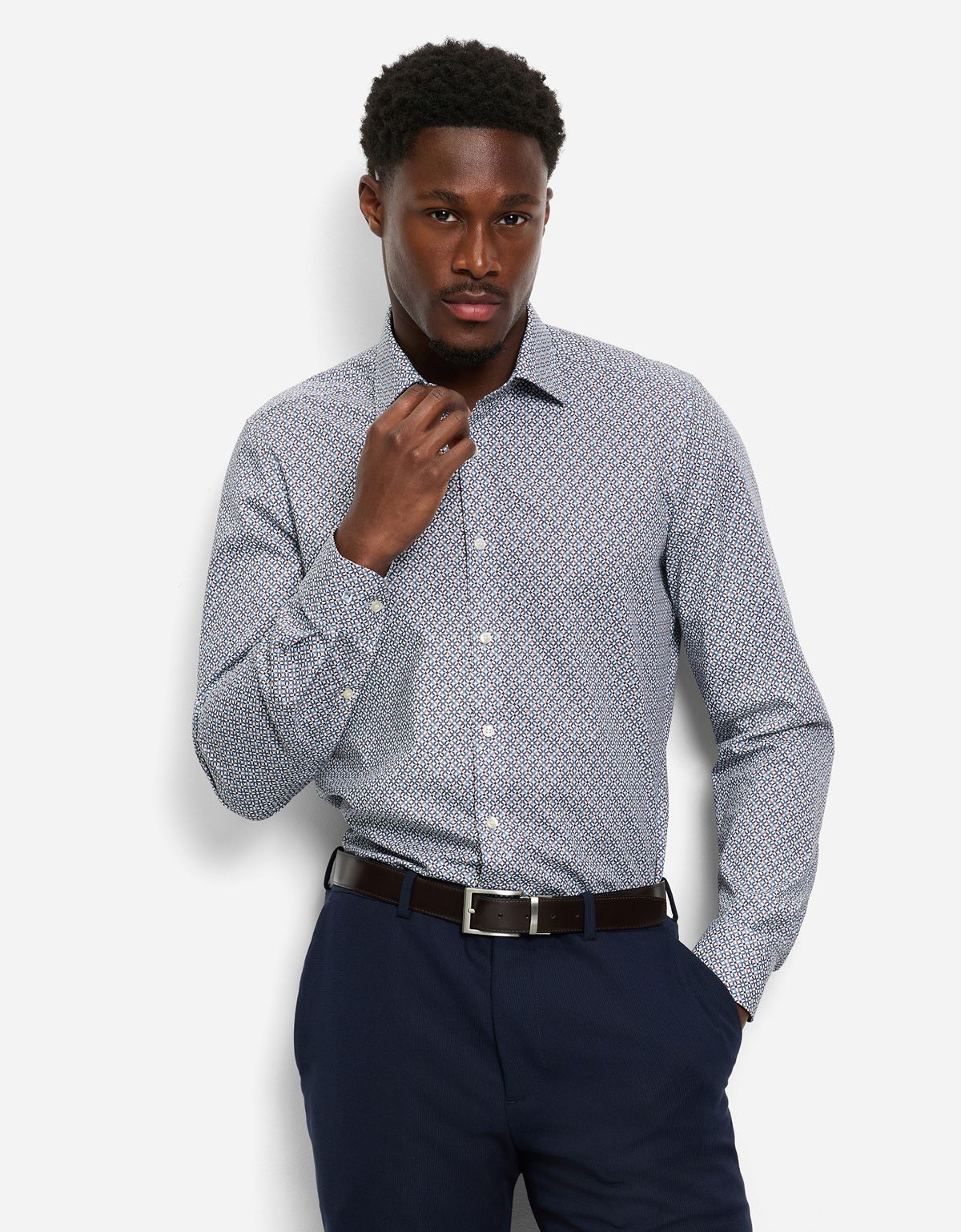 Рубашка мужская с принтом геометрия OLYMP, body fit, на высокий рост