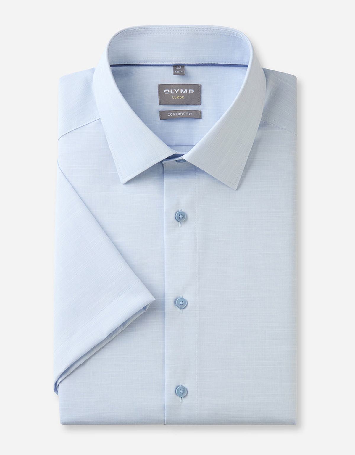 Мужская сорочка с коротким рукавом немецкого бренда OLYMP из серии Luxor Comfort Fit предназначена специально для комфортного летнего сезона.