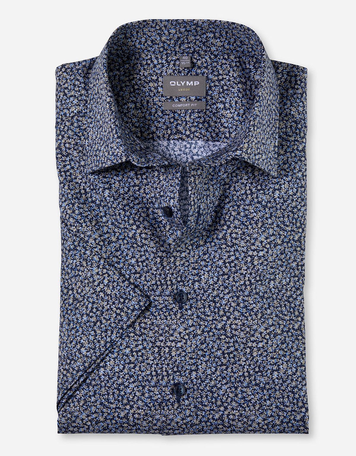 Мужская рубашка с коротким рукавом немецкого бренда OLYMP коллекции Luxor Comfort fit прямого силуэта.