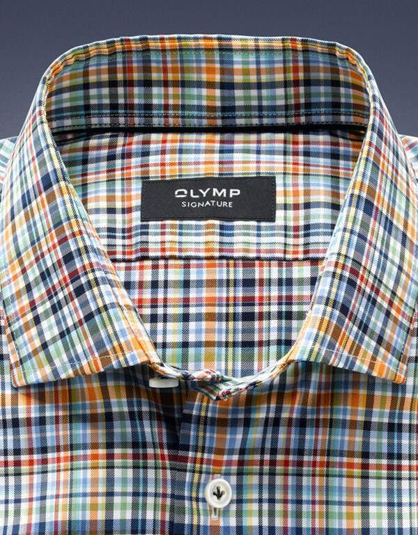 Мужская сорочка OLYMP премиум класса модели Signature с длинным рукавом, рисунком в многоцветную клетку.