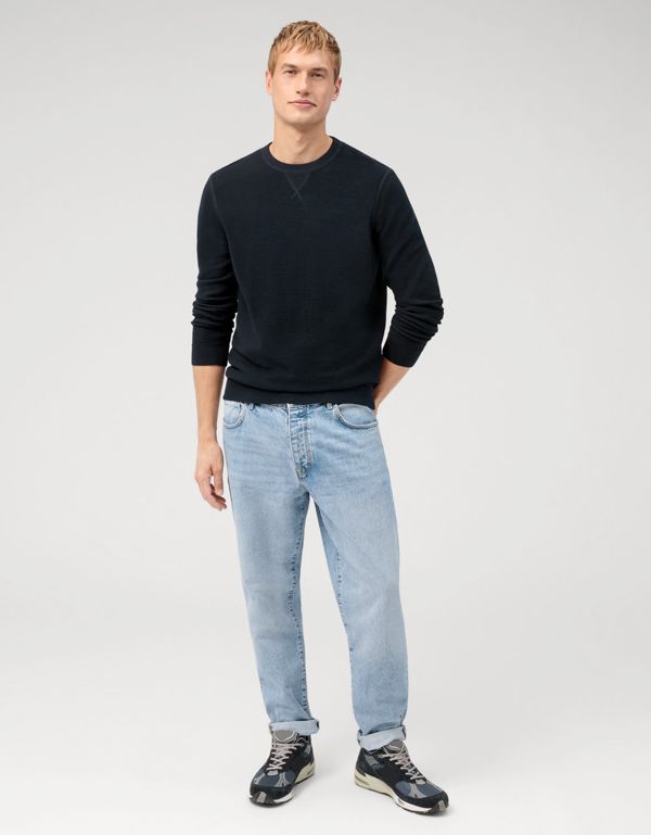 Обладатель этого джемпера с круглым вырезом из актуальной коллекции трикотажа OLYMP будет отлично смотреться и в повседневной жизни. Высококачественный хлопок стандарта GREEN CHOICE был использован для создания стильного, модного трикотажа с характерной текстурой. Современный мужской крой идеально сочетается с повседневным стилем отдыха, а вязаные манжеты обеспечивают оптимальную посадку в любых обстоятельствах. Универсальное средство для стильного и эффектного образа в стиле кэжуал.