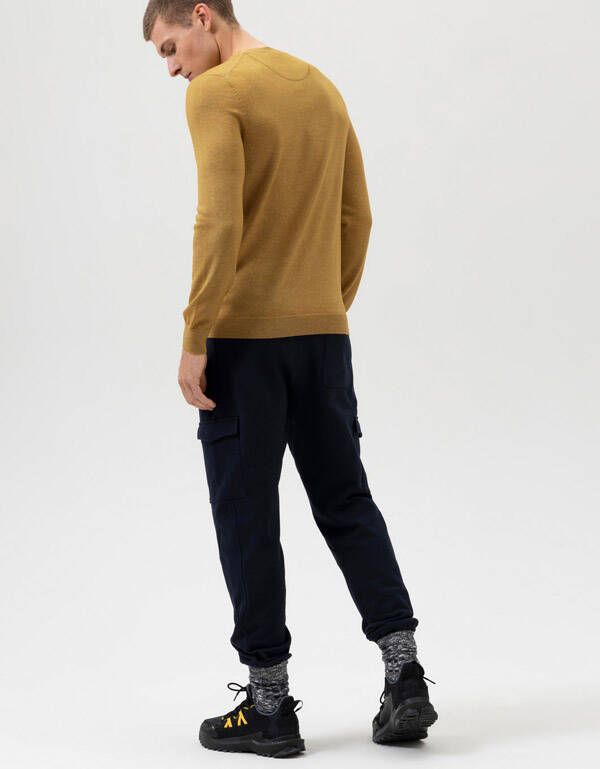 Современный процесс окрашивания придает этому вязаному джемперу цвета охры модную повседневную привлекательность. Ткань из чистой натуральной шерсти покорит вас своим особенно приятным ощущением и сделает эту универсальную вещь абсолютным фаворитом, особенно в прохладные дни.