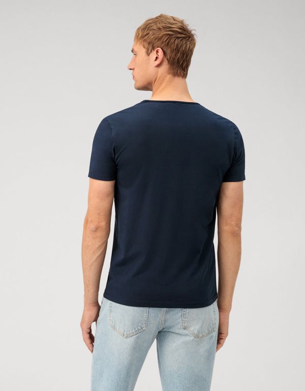 Классная базовая футболка тёмно-синего цвета. Независимо от того, носите ли вы ее как часть многослойного образа, под рубашкой или просто отдельно — эта футболка OLYMP Casual, со слегка удлиненным круглым вырезом, действительно впечатляет. Сверхтонкий одинарный трикотаж, изготовленный из хлопка с небольшим содержанием стрейча, обеспечивает первоклассный комфорт.
