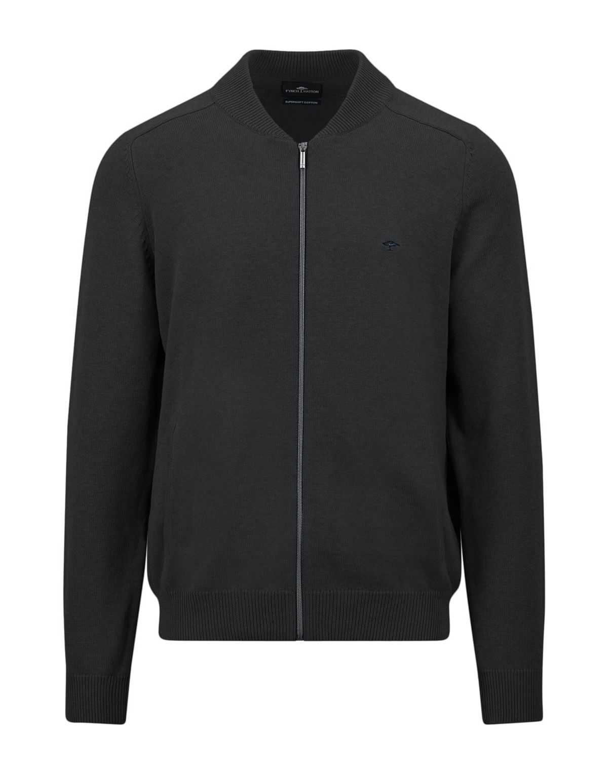 Мужской чёрный кардиган из чистого хлопка впечатляет своим спортивным характером и приятным комфортом при ношении — идеально подходит для ваших переходных образов.