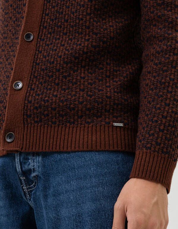 Кардиган мужской немецкого бренда OLYMP с геометрическис рисунком в коричнево-чёрных тонах.