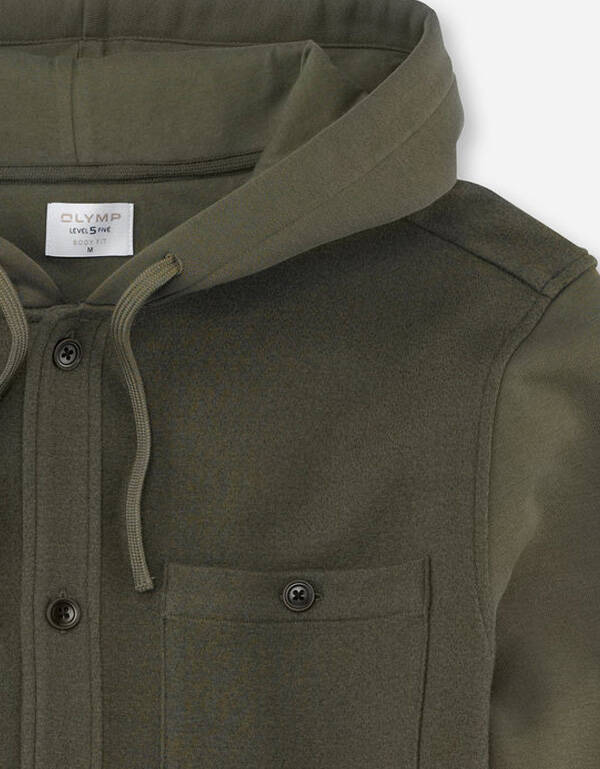 Захватывающий гибрид верхней рубашки и худи, этот стиль OLYMP Level Five является признаком того, что законодатель моды следит за своим стилем. Восхитительная смесь хлопка и полиэстера подчеркивает повседневную привлекательность толстовки, как и два нагрудных кармана. Расслабленный фаворит в цвета хаки. Мужчины, следящие за модой, знают, что хороший стиль проявляется и в непринужденной повседневной одежде. Гордый обладатель этой худи OLYMP Level Five из модной слегка ворсованной ткани с преобладающим содержанием хлопка обязательно все сделает правильно. Капюшон переходит в высокий воротник и регулируется кулиской. Планка на пуговицах и два нагрудных кармана были добавлены для еще большей непринужденности. Универсальный, удачный фасон с облегающим кроем и ребристыми манжетами, сохраняющими форму, который можно сочетать со всеми типами одежды.
