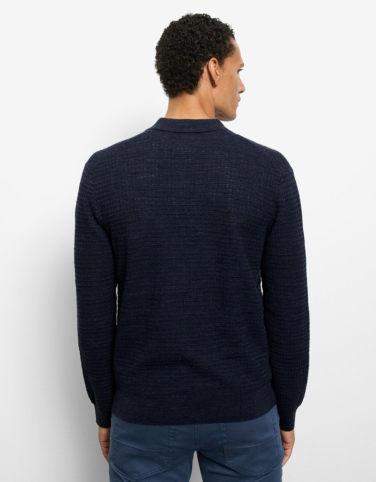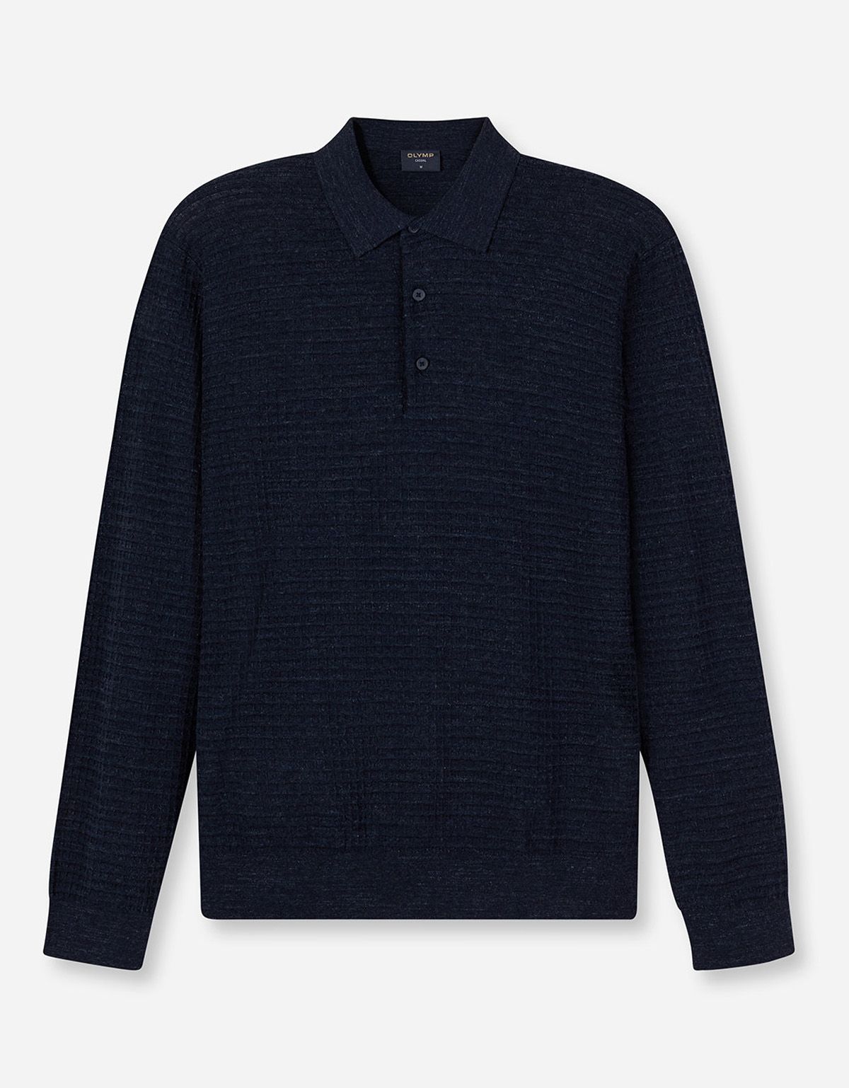 Мужское поло с длинным рукавом от немецкого бренда OLYMP выполнено в глубоком синем цвете.