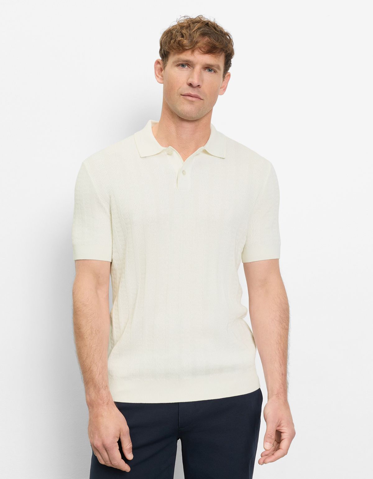 Таким образом, однотонное вязаное поло OLYMP молочного цвета с фактурой — это идеальный выбор для тех, кто ценит комфорт, стиль и внимание к деталям.