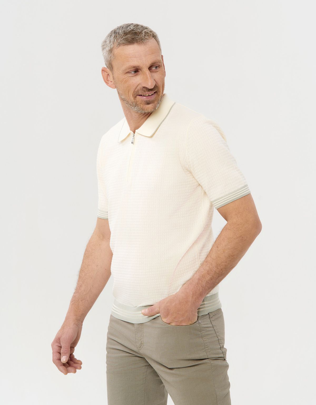 Фактурное мужское поло бренда GRATUDE — образец элегантного и современного стиля. Выполненное в классическом цвете слоновой кости, оно сочетает в себе утончённость и практичность.