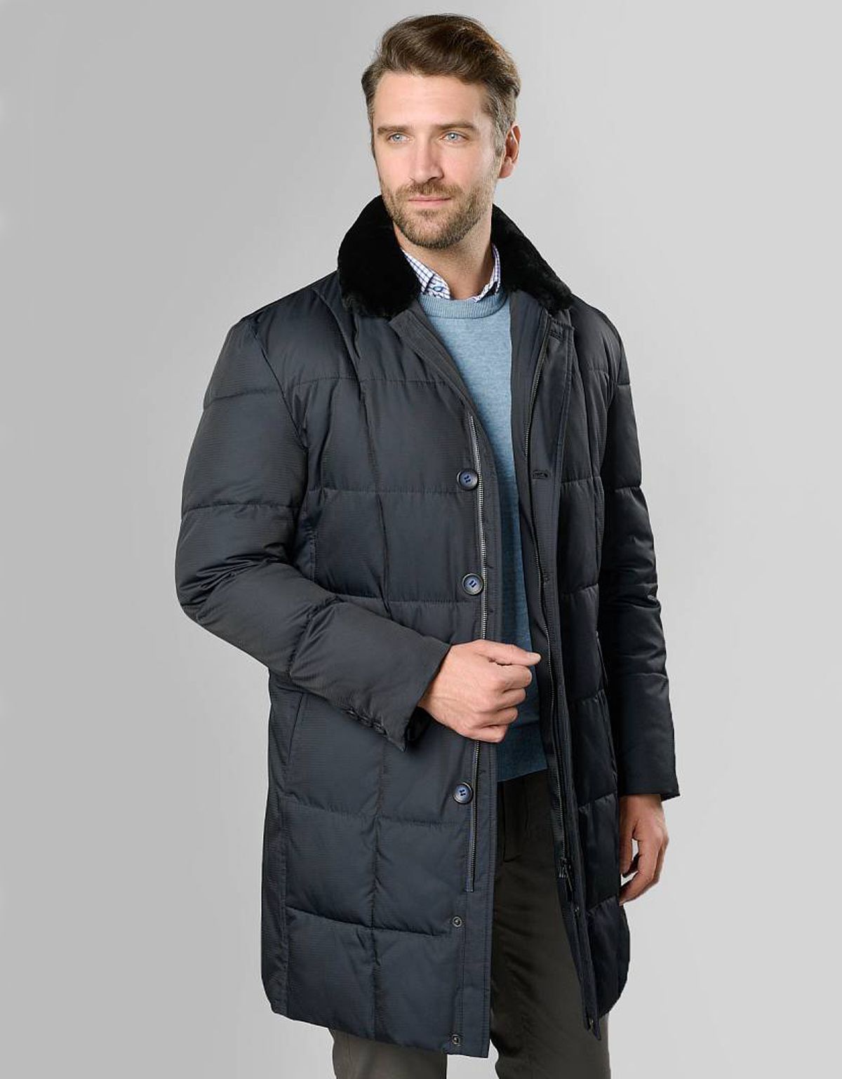 Куртка мужская утепленная чёрного цвета с меховым воротником, воротник - отложной на стойке.