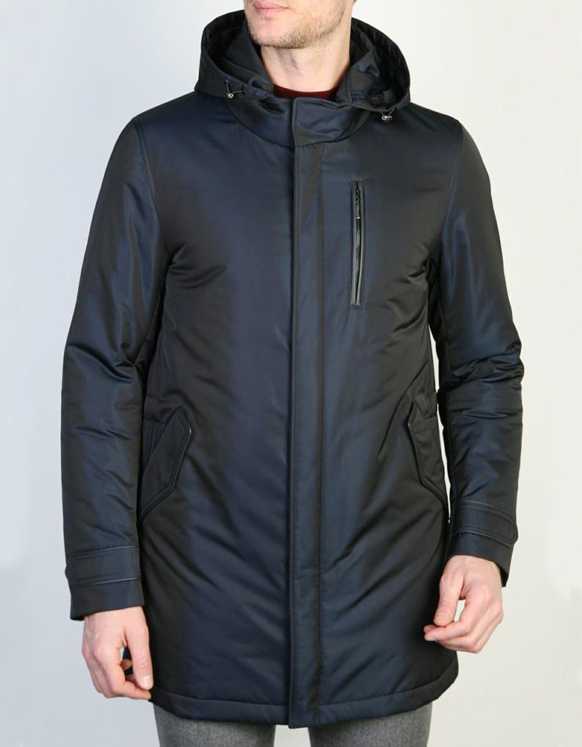 Куртка-парка удлиненная мужская RIGGI с капюшоном синего цвета.