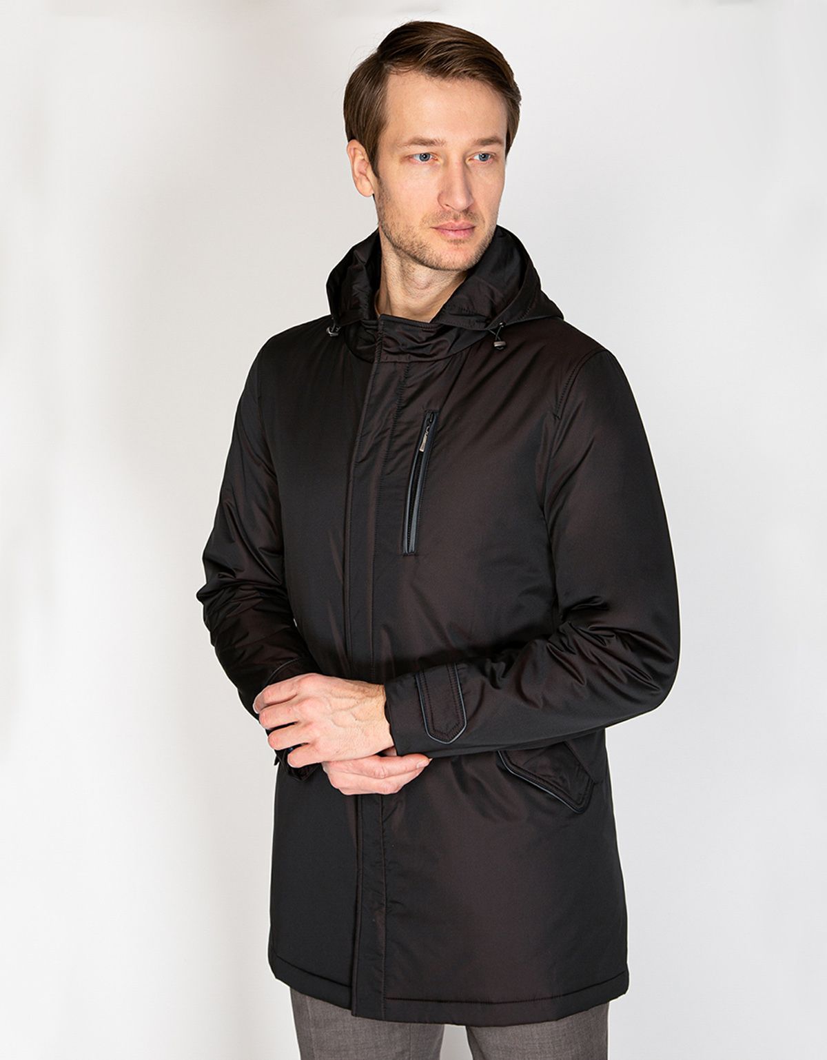 Куртка-парка утеплённая мужская RIGGI с капюшоном из ткани хамелеон тёмно-бордового цвета.