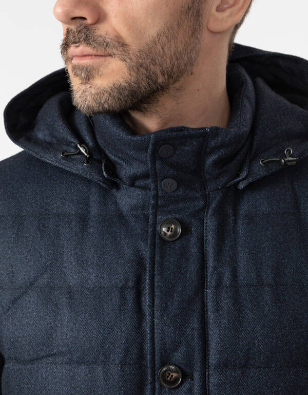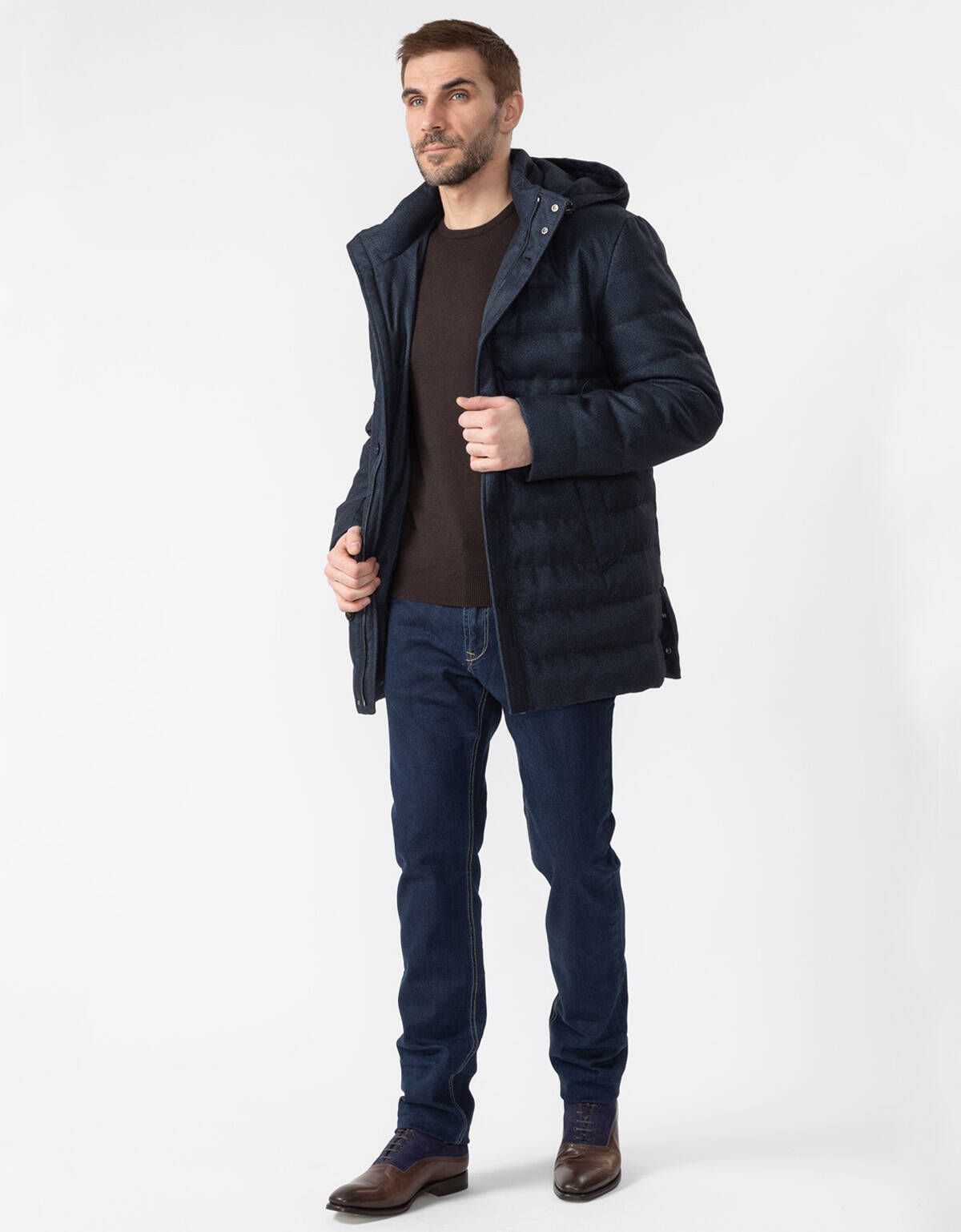 Мужской стеганый пуховик бренда Meucci средней длины с капюшоном