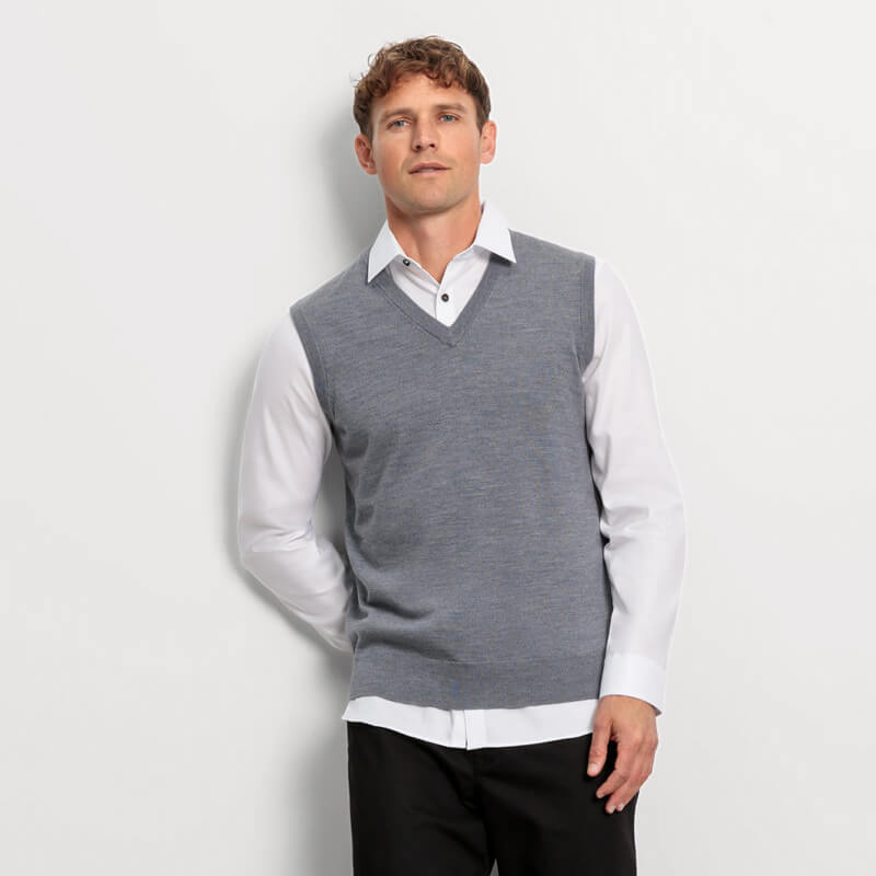 Для офисного дресс-кода подойдет классический жилет в сочетании с белой рубашкой и темными брюками. Добавьте аккуратный галстук и туфли черного цвета, чтобы завершить образ.